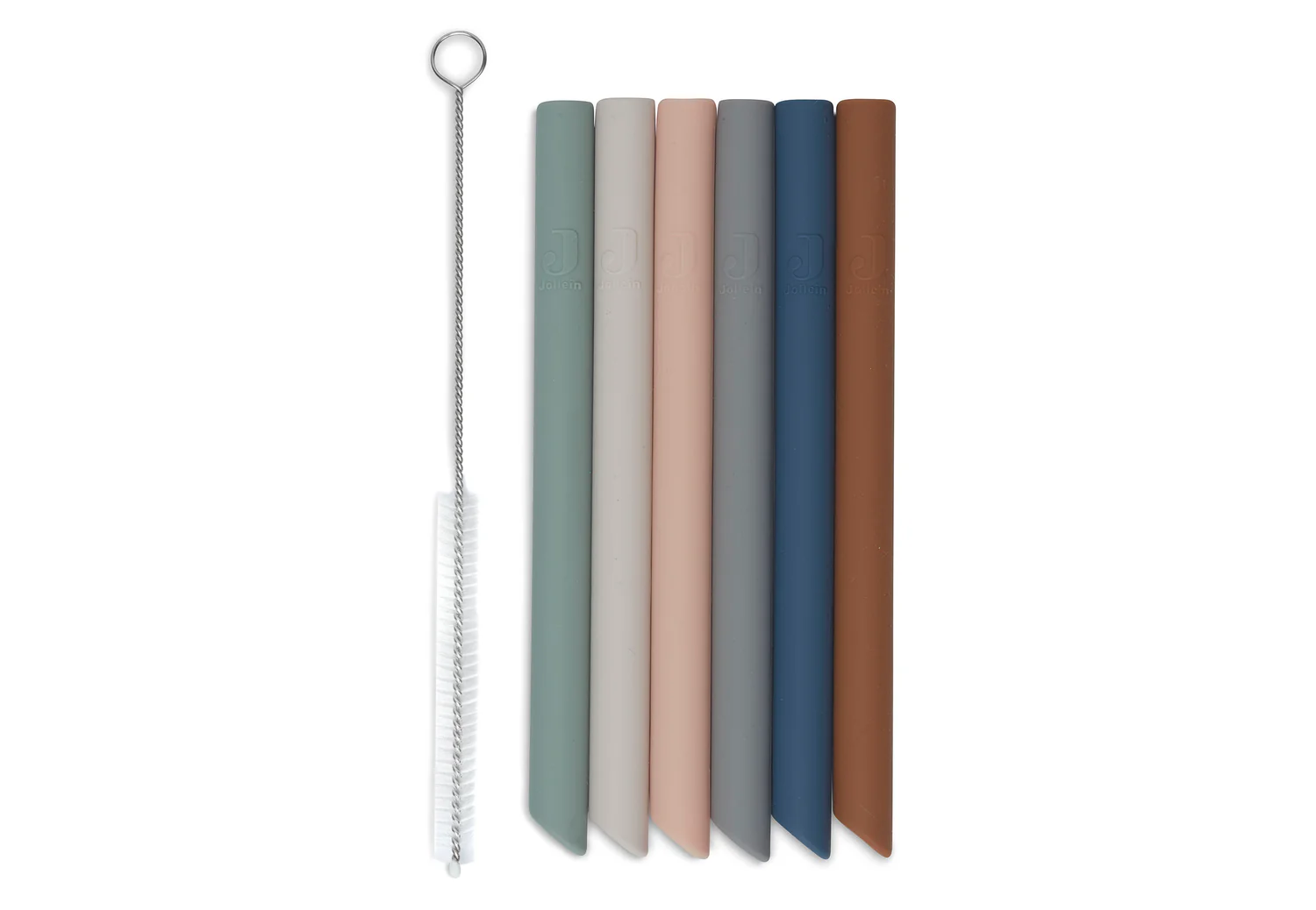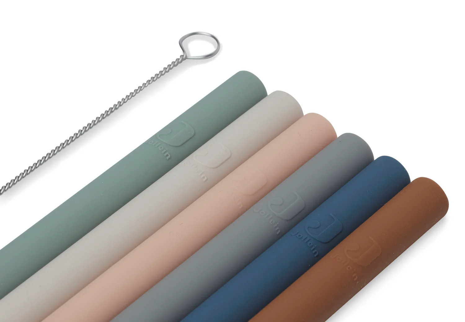 Die Strohhalme sind zu 6 Stück in 6 verschiedenen Farben aus dem Silikon-Thema verpackt. Die Strohhalme passen perfekt in den Silikon-Trinkbecher von Jollein.