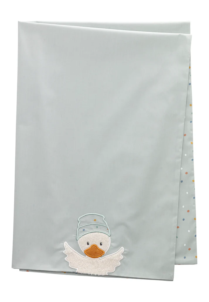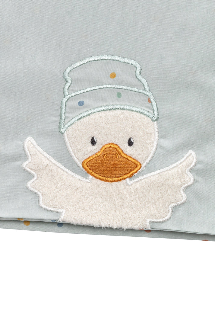 • UV-Decke ENTE Edda aus Baumwollmischgewebe mit süßer Applikation. Beisdeitig verwendbar.