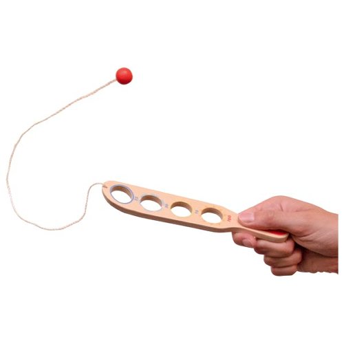 Einfach und doch spannend. Alleine oder im Wettkampf mit den Eltern muss das Kind einen Ball durch eines der vier Löcher bugsieren.
