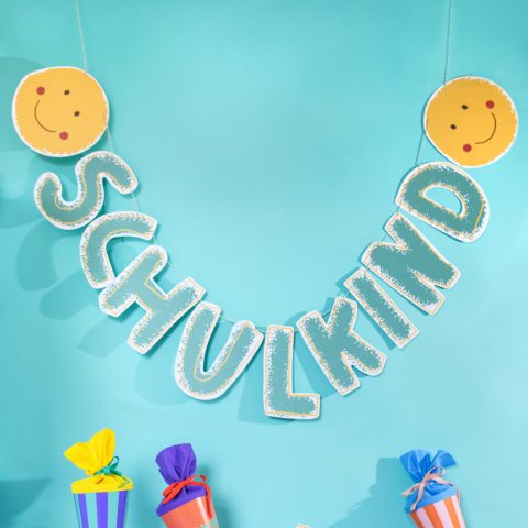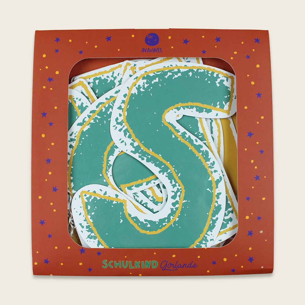 Inhalt: 9 Elemente bilden das Wort “Schulkind”, Schnur: ca. 3 m Länge”