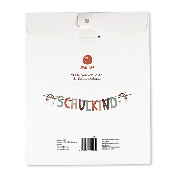 Inhalt: 9 Elemente bilden das Wort “Schulkind”, Schnur: ca. 3 m Länge”