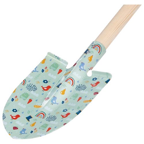 Die Spatenblatt-Bedruckung macht so richtig Lust auf Frühling. Ab in den Garten, rein in die Beete. Der stabile Massivholzstiel und das Metallblatt lassen ein realistisches „Arbeitsfeeling“ aufkommen, obwohl das Graben im Garten für die Kinder doch purer Spielspaß ist. Ganz wichtig bei jeder Gartenarbeit: Pause mit Snack nicht vergessen! Hinweis: Ist der Frühling vorbei, dann darf der Spaten gerne am Strand für den Burgen- und Hafenbau genutzt werden. Und das sind die Fakten: Spatenlänge 84 cm Material: Holz, Metall Alle Materialien genügen höchsten Ansprüchen an die Spielzeugsicherheit