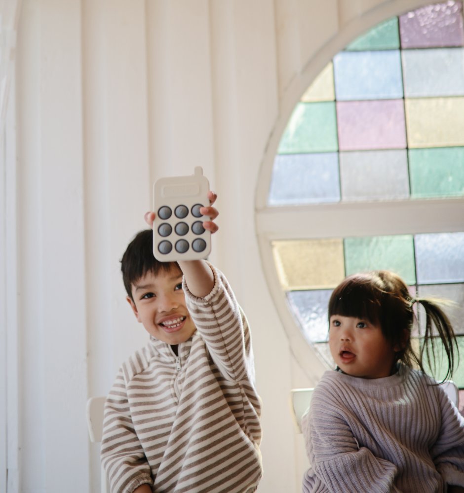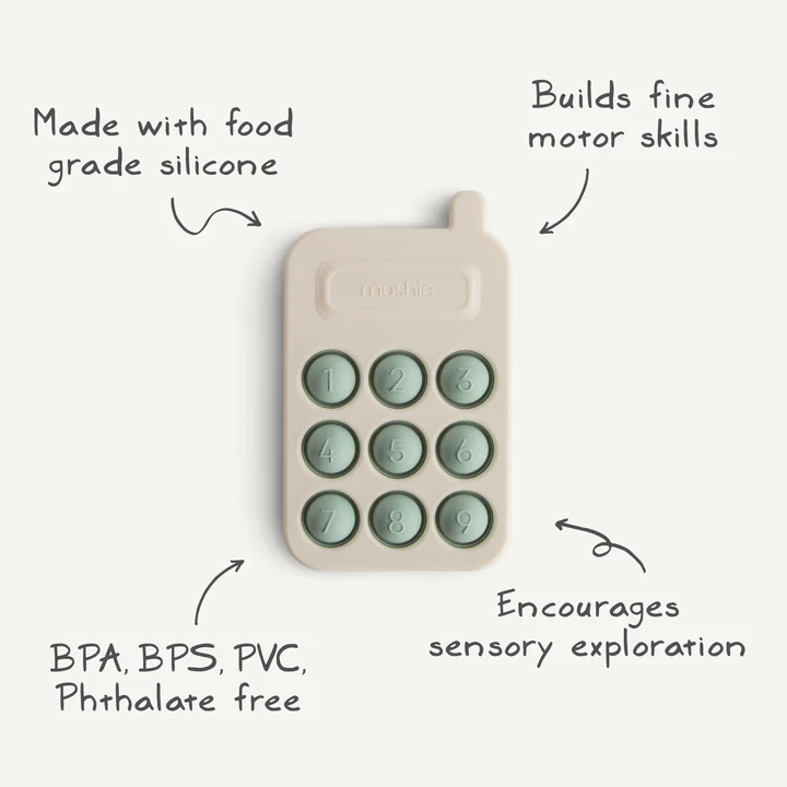 Für kleine Hände entwickelt, fördert das Phone-Press-Spielzeug mit seinem einfachen Design und den sanften Farben die sensorische Erkundung und die Entwicklung feinmotorischer Fähigkeiten. Mit lebensmitteltauglichem Silikon und einem BPA-freien Kunststoffrahmen.