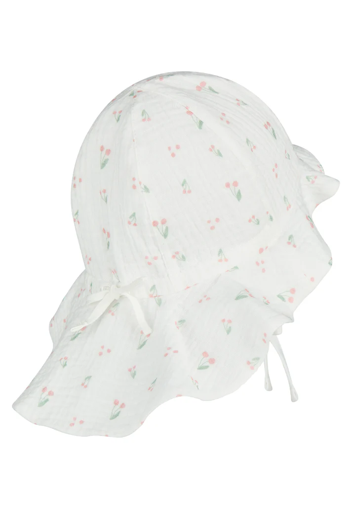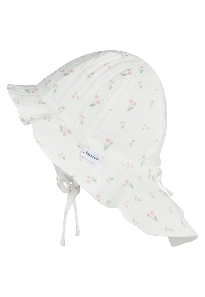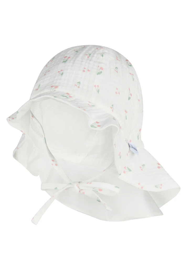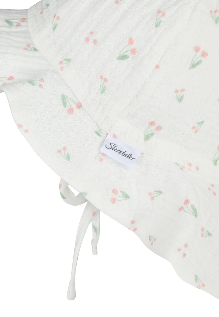 • Sonnenhut aus Baumwoll Musselin (Bio) bedruckt mit Kirschen