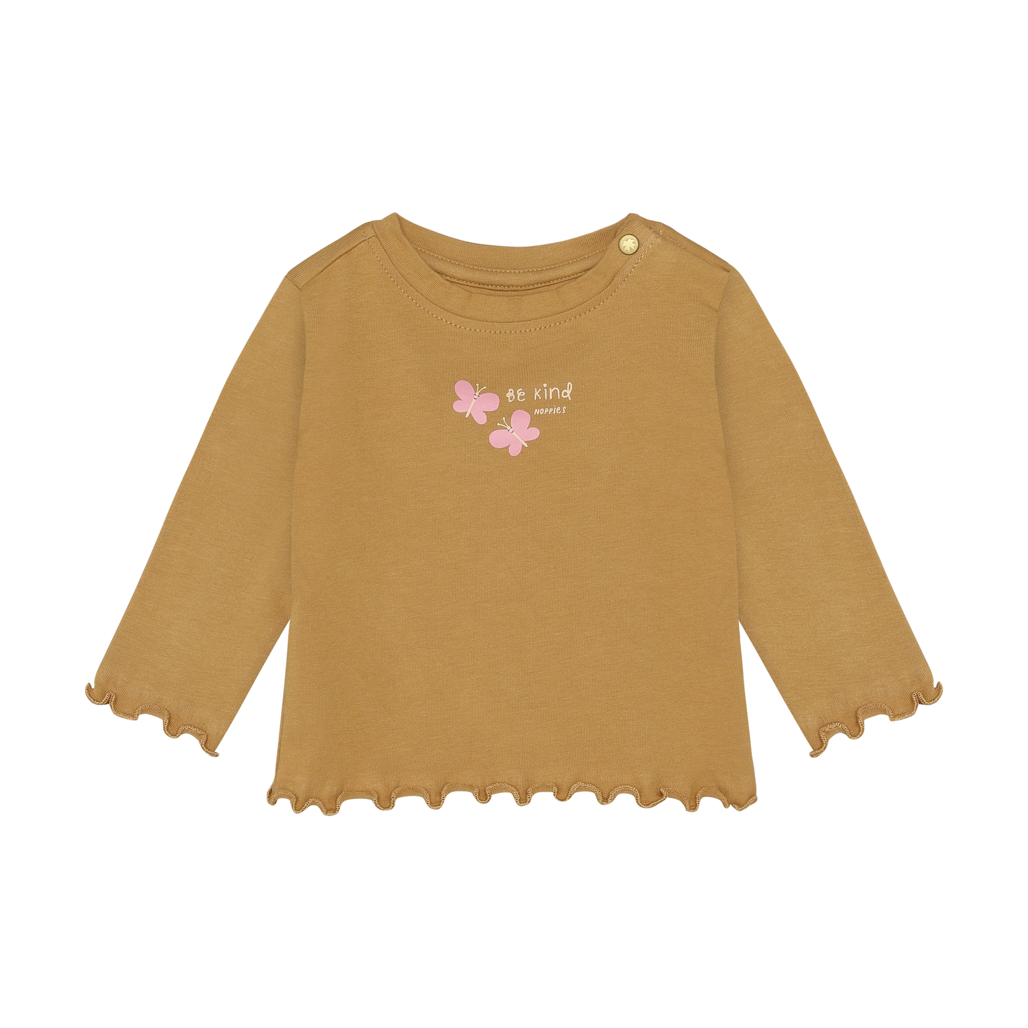 Dieses Langarmshirt von Noppies Baby besteht aus weichem Single-Jersey aus Bio-Baumwolle mit etwas Stretch. Der Stoff ist GOTS-zertifiziert (CERES-0366) und angenehm auf der Haut. Der Rundhalsausschnitt mit Druckknöpfen an der Schulter erleichtert das An- und Ausziehen. Der fröhliche Print auf der Vorderseite verleiht dem Shirt eine verspielte Note, ideal für den Alltag. Ein bequemes und stilvolles Langarmshirt für dein Kleines.