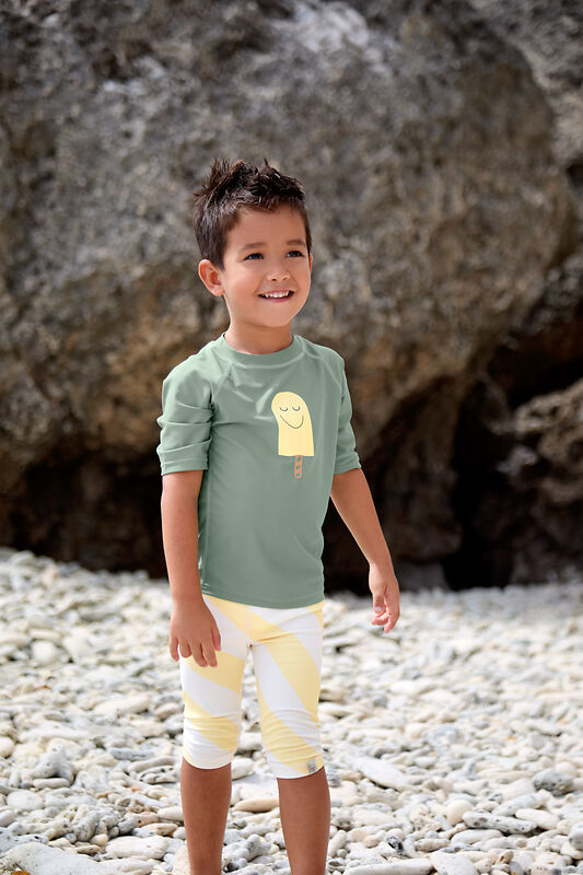 Das kurzärmelige Kinder Badeshirt mit UV-Schutz 60 sorgt für einen Hauch Italien bei kleinen Sonnenfans – und für unbeschwerten Badespaß. Sommer, Sonne, Eiscreme!