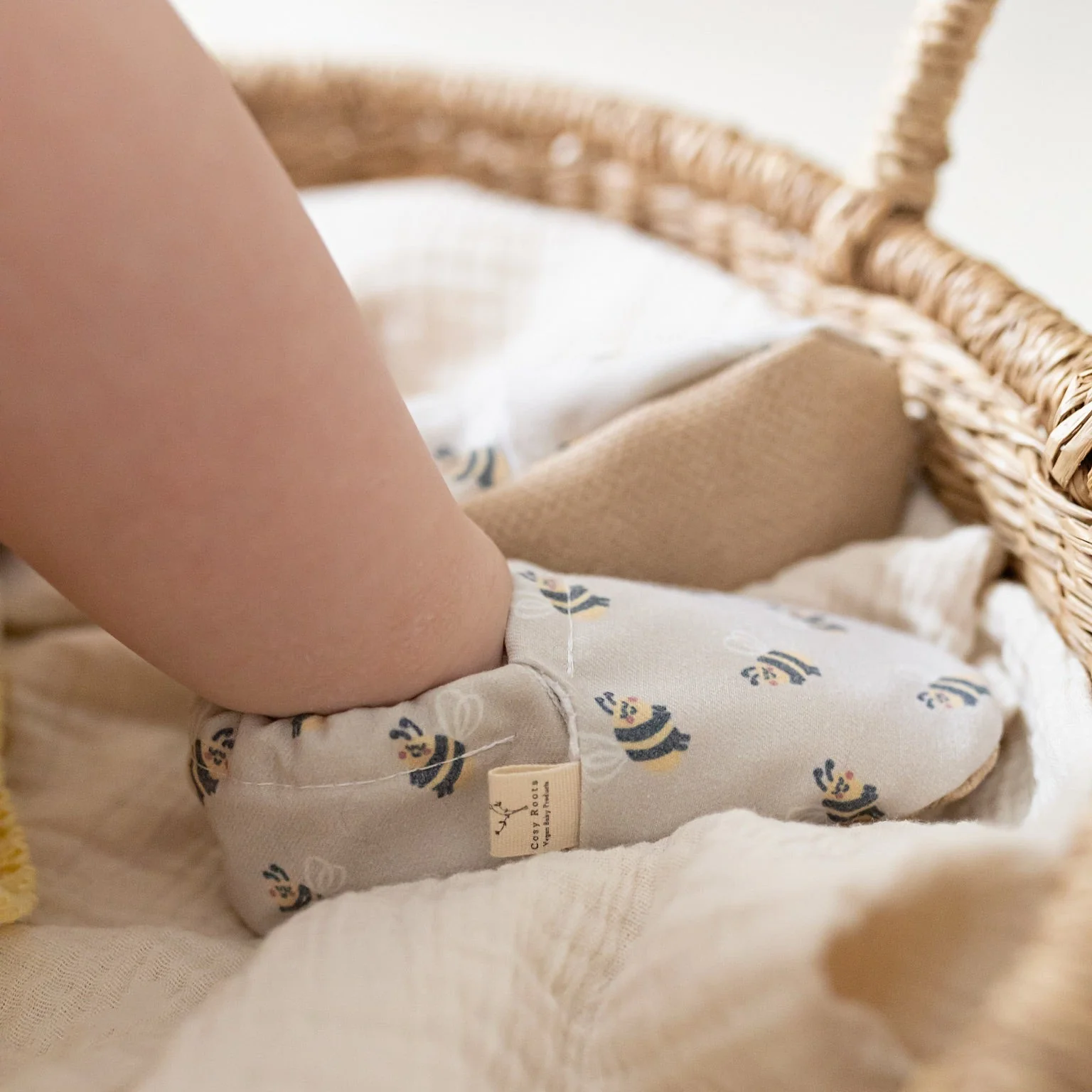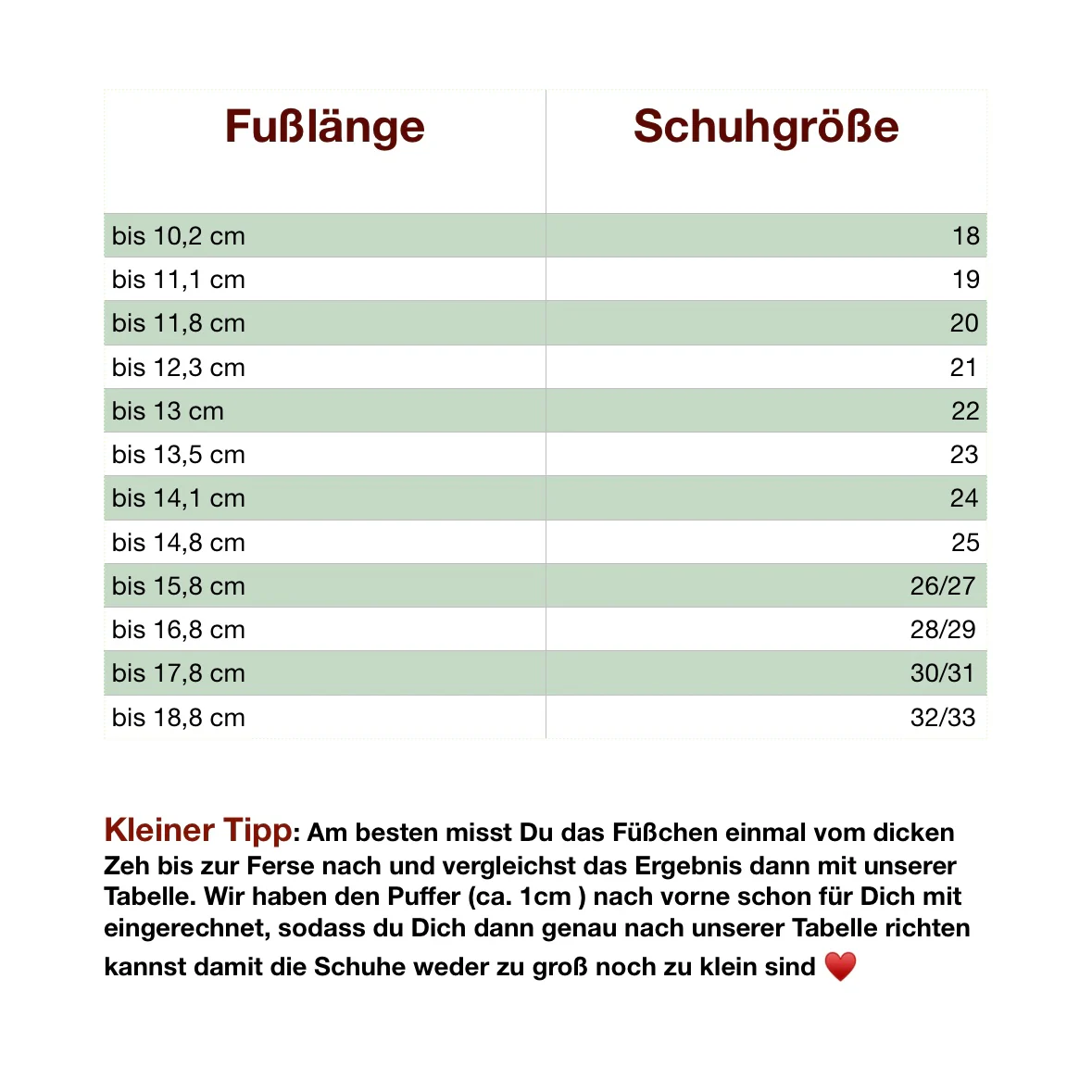 Bitte nicht auf rauen Böden (Asphalt, Kieswege etc.) krabbeln, damit Ihr lange etwas von unseren weichen Schuhen habt!