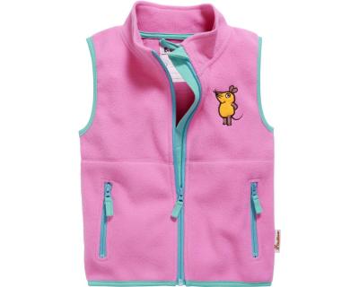 Moderne Fleeceweste in verschiedenen Farben für kühlere Tage. Highlights sind die Maus Applikationen auf der Vorder- und Rückseite.